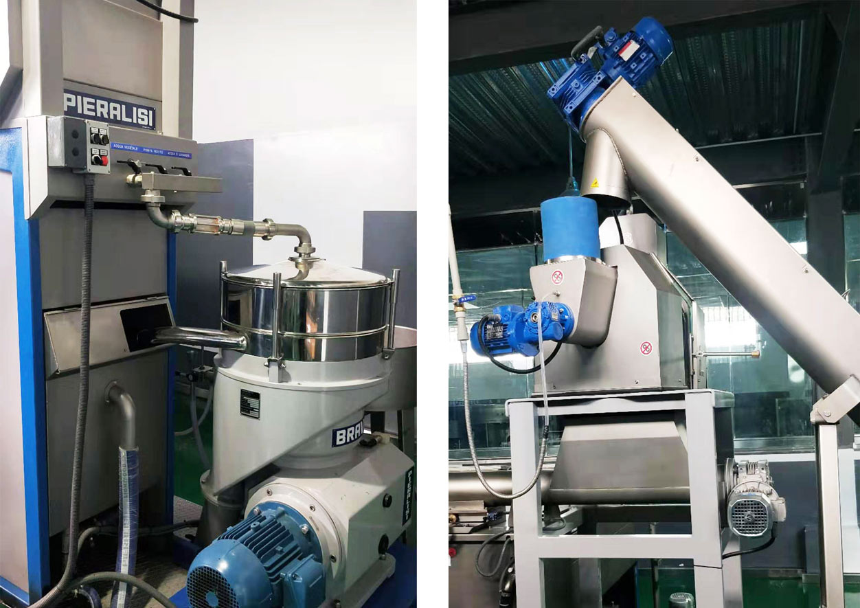 ⑤離心出油:將融合好的果漿輸送到臥式離心機(jī)進(jìn)行油和果渣的分離,離心機(jī)的轉(zhuǎn)速為3500r/min,此時得到相對干凈的橄欖油初產(chǎn)品,里面還含有部分水分。